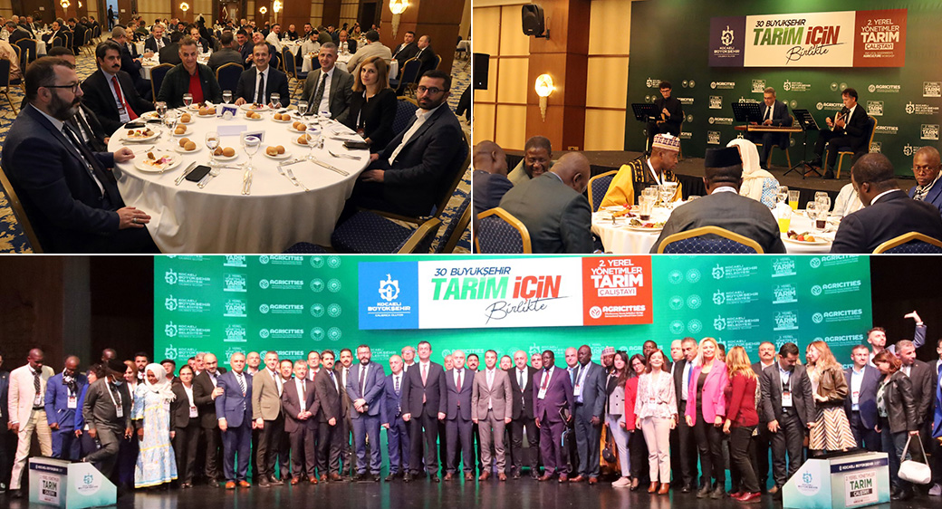 Uluslararası Tarım Şehirleri Birliği (Agricities) tarafından Kocaeli Büyükşehir Belediyesi ev sahipliğinde düzenlenen 2. Yerel Yönetimler ve Tarım Çalıştayı’nın ilk günün sonunda 30 Büyükşehir Belediyesinden gelen ilgili bürokratlar ile Afrika ve Balkan ülkelerinin belediyelerinden katılan misafirler, düzenlenen gala yemeğinde bir araya geldi.