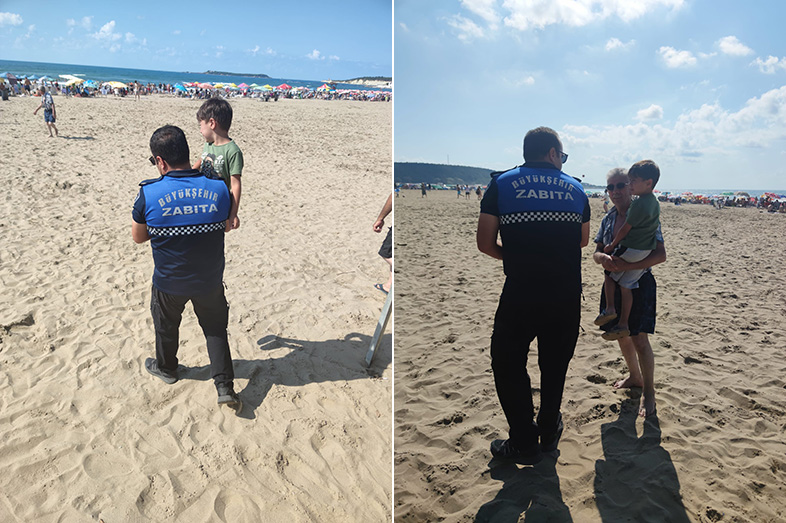 Kocaeli’nin Mavi bayraklı plajlarında Büyükşehir Zabıta Personeli devriye gezerken bir günde 2 kayıp çocuk buldu ailelerine güvenli bir şekilde teslim etti.