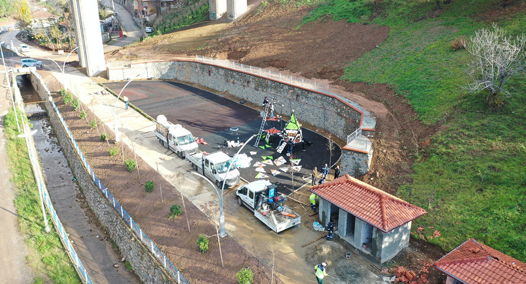 Kaba inşaatı tamamlanan tuvalet ve mescit binasının duvar, çatı ve kiremit işleri tamamlanırken ince işçilik çalışmalarına devam ediliyor. Çalışmalar dahilinde bisiklet ve yaya yollarının 650 metrelik kısmı tamamlandı, sulama ve aydınlatma işleri bitirildi. Önümüzdeki günlerde çocuk oyun grubunun montajı yapılacakken yürüyüş yolunun çevresine ağaçlandırma ve peyzaj çalışması gerçekleştiriliyor.