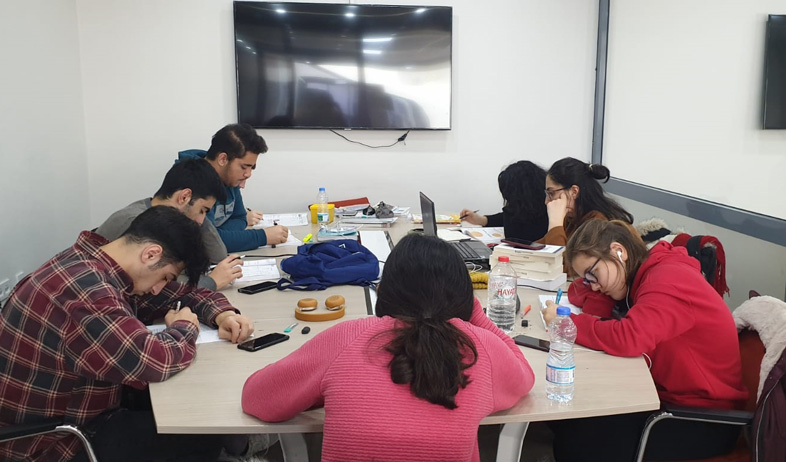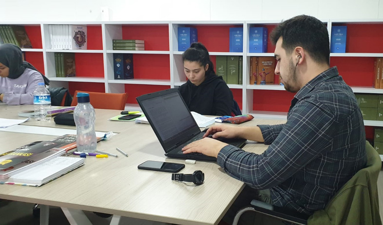 Öğrenciler, yarıyıl tatilinde Gebze Çoban Mustafa Paşa Kütüphanesi’nde ders çalışıp ödevlerini yapıyor