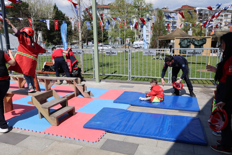 Kocaeli Büyükşehir Belediyesi İtfaiye ekipleri tarafından hazırlanan özel parkur, gün boyunca çocukların en çok vakit geçirmek istediği alanlardan biri oldu. Farklı etaplardan oluşan parkurda minikler; denge, hız ve dikkat gerektiren görevleri büyük bir heyecanla tamamladı.