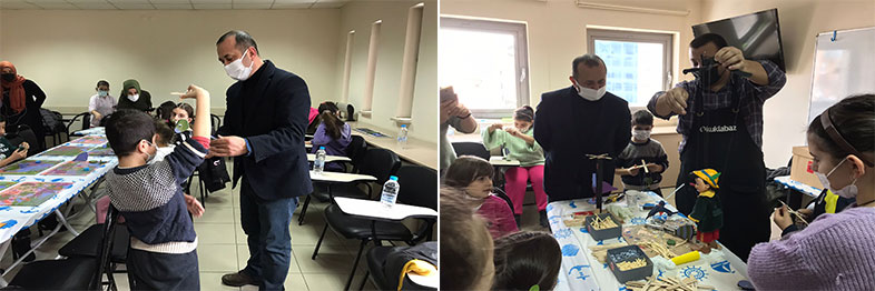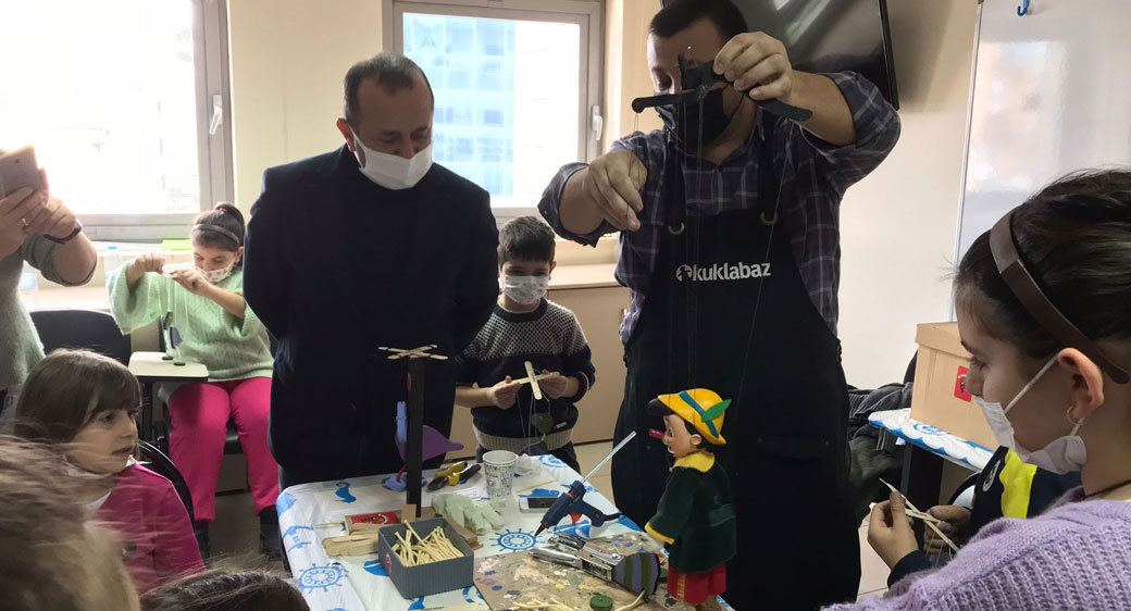 Başkan Veli Çakmak, sanat ve eğlence atölyelerinin Gebze Osman Hamdi Bey Kültür Merkezi’nde gerçekleştirilen etkinliklerine katıldı. Çakmak, Kukla Atölyesi’nde kukla yapımını izledi. Yapılan kuklaları çok beğenen Başkan Vekili Çakmak, çocukların yaptıkları kuklaları oynatmalarını ise keyifle izledi.
