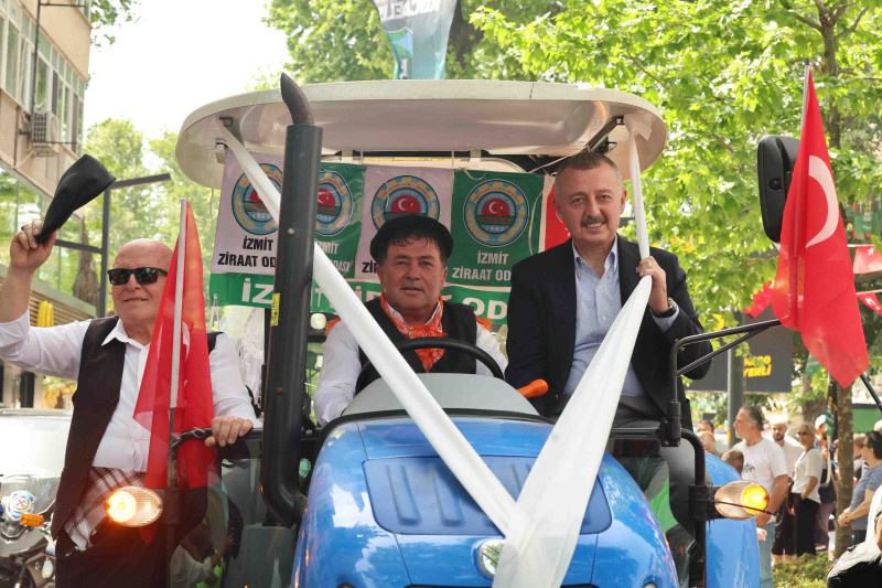 İzmit Ziraat Odası Başkanı Yusuf Karaaslan’ın kullandığı traktöre binerek konvoya eşlik eden Başkan Büyükakın, çevre esnafın ve vatandaşların sevgi gösterilerine el sallayarak karşılık verdi. Merkez Bankası önünden başlayan ve Cumhuriyet Bulvarı güzergâhında devam eden yürüyüş, Fevziye Camii önünde tamamlandı.