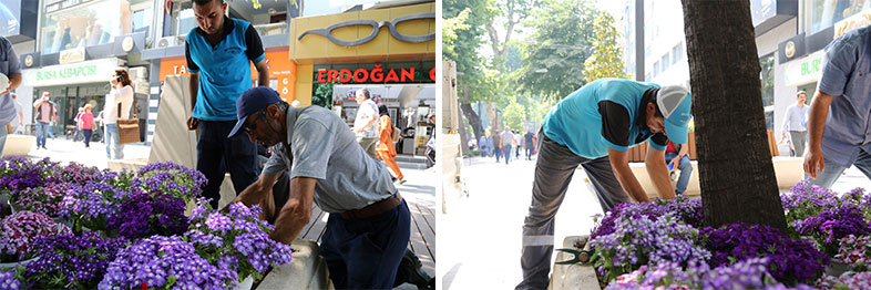 Park ve Bahçeler Dairesi Başkanlığı ekipleri, Cumhuriyet Bulvarını farklı çiçek ve bitkilerle süslüyor. Rengarenk çiçekler vatandaşlara yürürken keyif alacakları bir yaşam alanı oluşturuyor. Güzergah boyunca yapılan çalışmalarla Park ve Bahçeler ekipleri şehrin güzelliğine güzellik katıyor.