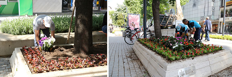 Kocaeli Büyükşehir Belediyes,i Cumhuriyet Bulvarına yeni çiçekler ekiyor