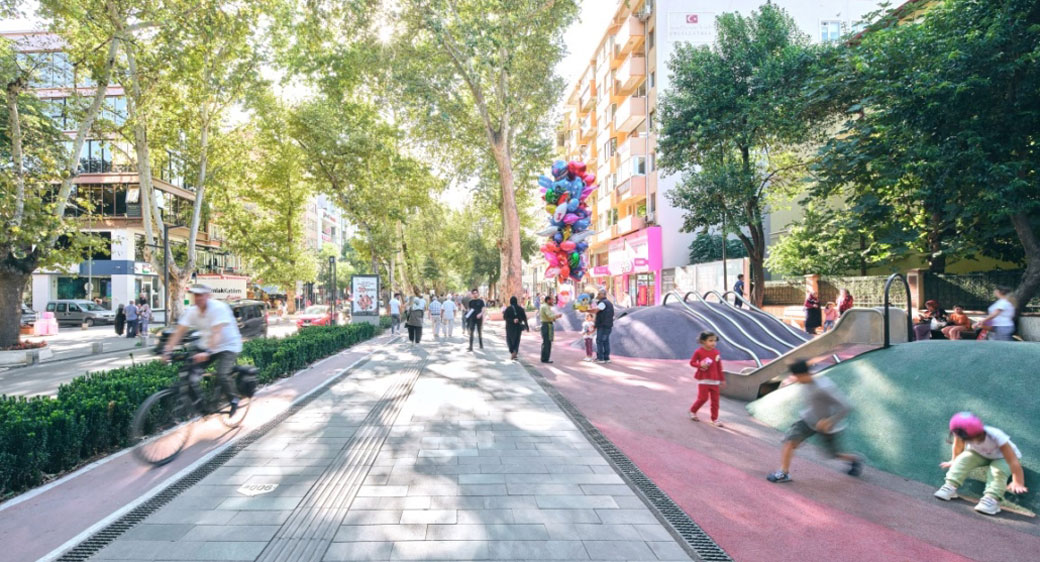 Yapı Dergisi’nde şu ifadelere yer verildi: “Öncelikle iki eski araç yolu arasında kalan ve karşıdan karşıya geçişlerde bir engel oluşturan yüksek yürüyüş yolu, alanın yeniden tesviye edilmesi ile mevcuttaki kaldırımlarla bütünleştirilmiş. Koruma altındaki çınarların etrafını çevreleyen imalaralar, geçirimli betonla değiştirilip ağaç köklerinin su alması sağlanmış. Ayrıca yeni tasarlanan oturma bankları bu ağaçları çevreleyip onları koruyacak şekilde tasarlanmış. Bu oturmalar ziyaretçilerin cadde boyunca kamusal alanın merkezinde, çınarların gölgesinde, cadde seslerini dinleyerek vakit geçirmelerine olanak tanıyor.