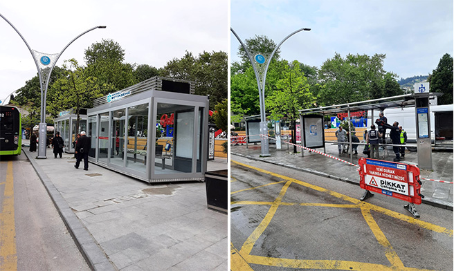 Kocaeli Büyükşehir Belediyesi Ulaşım Dairesi Başkanlığı’nca yürütülen hizmetler kapsamında vatandaşlarımızın konforlu ve güvenli yolculuk yapabilmesi amacıyla çalışmalarını sürdürüyor. Günlük hayatta yoğun bir şekilde kullanılan ve yolcu hizmetlerinin temel unsurlarından olan duraklar Kocaeli Büyükşehir Belediyesince yenileniyor. Bu kapsamda Cumhuriyet Parkına kapalı modern durak inşa edildi.