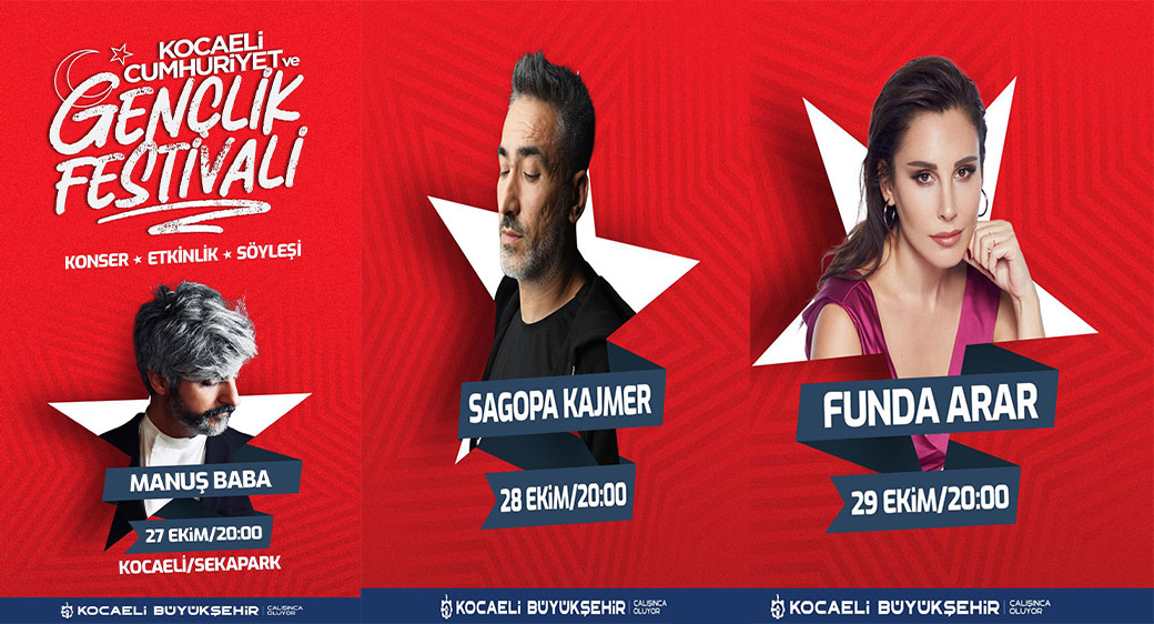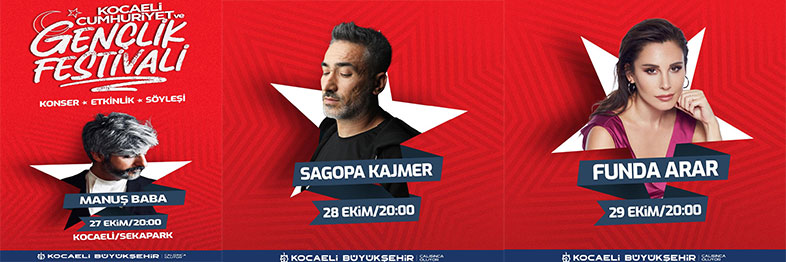 Kocaeli Büyükşehir Belediyesi tarafından bu yıl üçüncüsü düzenlenen Kocaeli Cumhuriyet ve Gençlik Festivali, 27 Ekim Çarşamba günü saat 14.00’te Sekapark Uçurtma Tepesi festival alanında başlayacak. Üç gün sürecek ve ilk gün Kabile Sirk Sanatları Gösterisi ile start alacak festivalde Alternatif Sahnede saat 16.00’da Post42 Söyleyişisi ve saat 17.30’da da Murat Bizel Perküsyon Şov sahne alacak. Sonrasında ise festivale katılanlar yeniden Kabile Sirk Sanatları Gösterisiyle buluşacak. Akşam 20.00’de ana sahnede ise Manuş Baba konser verecek.