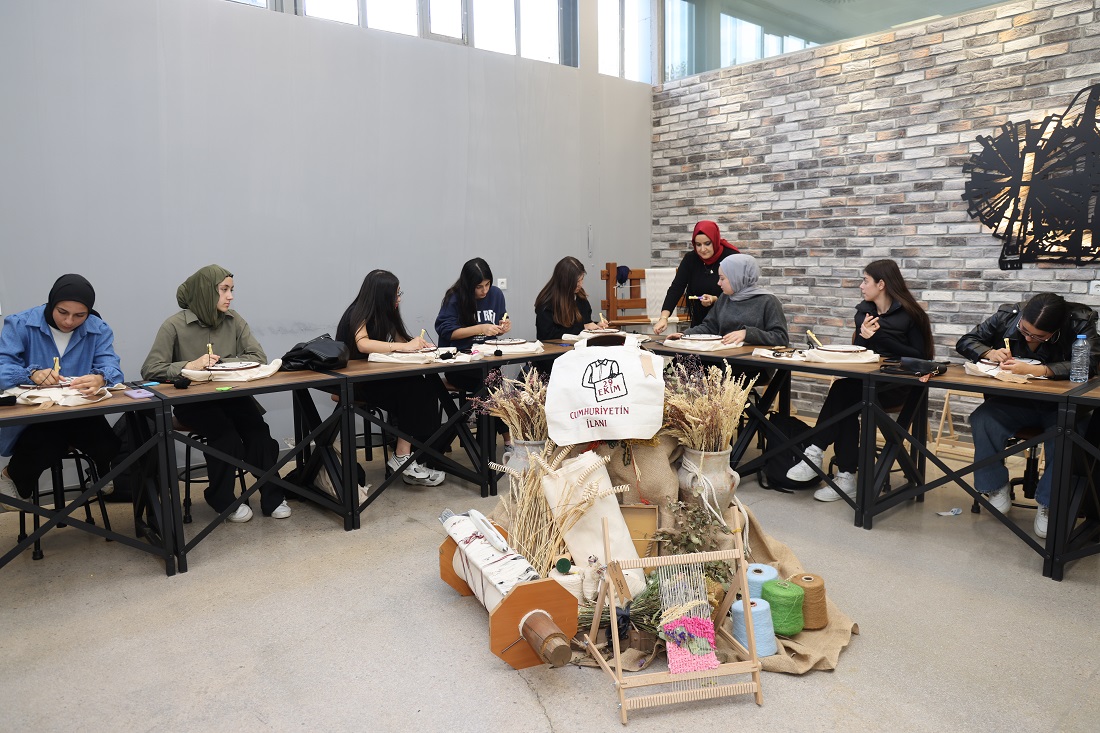 Eğitmen Yıldız Ersöz’ün önderliğinde gerçekleşen workshopta öğrenciler hem geleneksel el sanatlarını modern tasarımla buluşturdu hem de üretmenin, paylaşmanın ve dayanışmanın mutluluğunu yaşadı. Atölye boyunca büyük bir heyecan ve özenle çalışan öğrenciler, kendi elleriyle oluşturdukları çantalarda Cumhuriyet’in simgelerini yaşattı.