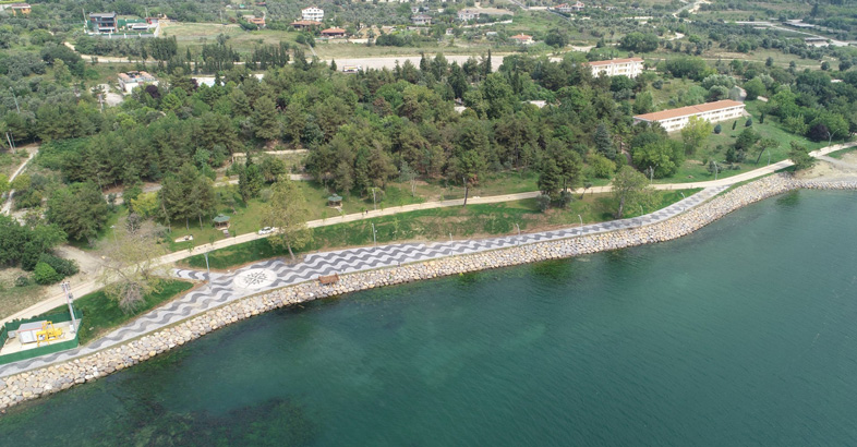 2 bin 300 metre uzunluğunda inşa edilen 2. Etap Sahil Parkı çalışmaları kapsamında şu ana kadar beton yolun bin 100 metresi tamamlandı. Çalışmalar kapsamında deniz kıyısına 600 metre taş tahkimat, balık tutma iskelesi, bin 100 metre uzunluğunda 5 metre genişliğinde yürüyüş ve bisiklet yolu, 6 adet altıgen kamelya, 150 metre travers, Çınaraltı dinlenme alanına bin 900 metrekare granit küptaş meydan düzenlemesi, Çınaraltı dinlenme alanına 90 metrekare podima taşı ile pusula yer döşemesi, papatya aydınlatma direği, 40 adet alüminyum aydınlatma direği imalatları yapıldı. Ayrıca 40 dönüm alanın sulama hattı çekilerek çimlendirme yapılırken, 2 bin adet ağaç ve çalı türleri dikildi.