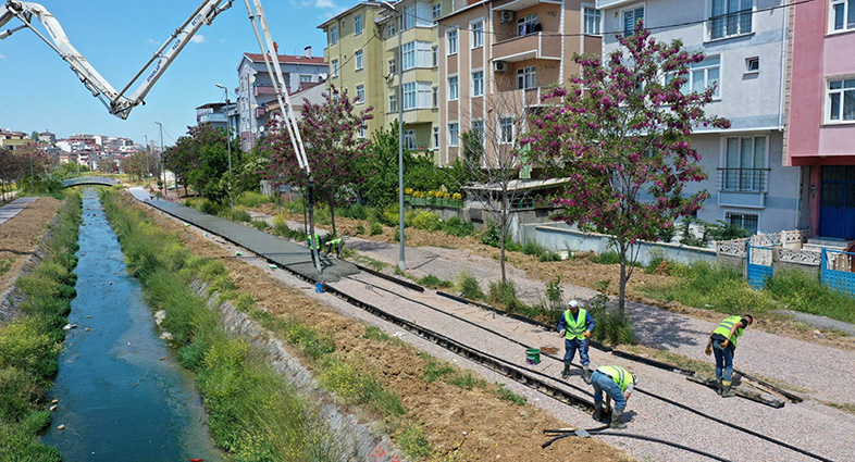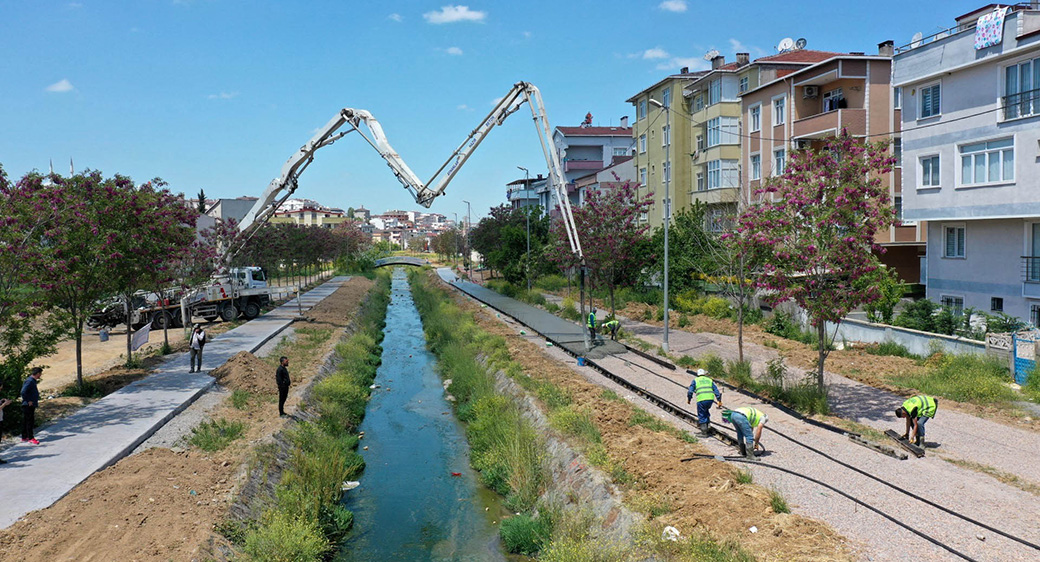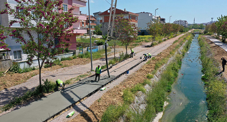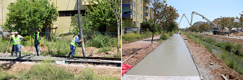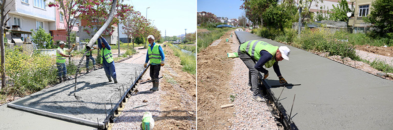 Çalışmalarına geçtiğimiz günlerde başlayan Büyükşehir Belediyesi ekipleri şu an bisiklet ve yürüyüş yolu için baskı beton işi yapıyor. Proje dahilinde toplamda iki kilometre uzunluğunda bisiklet ve yürüyüş yolu inşa edilecek. Böylelikle vatandaşlar genci yaşlısı ile rahat bir şekilde yürüyecek ve bisiklete binebilecek.