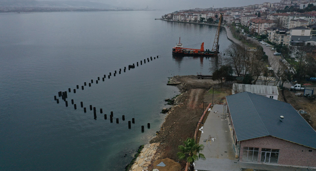 Büyükşehir, Gölcük Değirmendere’de yapımına başladığı kayık-çekek yeri için kazık çakma çalışmalarında sona yaklaştı. 100 kazıktan 85’i çakıldı