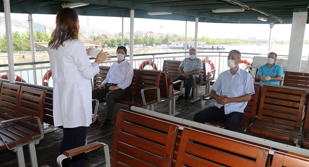 Türkiye’yi etkisi altına alan koronavirüs salgını nedeniyle 21 Mart tarihinden itibaren bir kısmı durdurulan deniz ulaşımı, tam kapsamlı seferlerine bugün itibariyle yeniden başladı. Yolcu yoğunluğunun başlayacağı öngörülen deniz ulaşımı personeline Sağlık ve Sosyal Hizmetler Dairesi Başkanlığı Sağlık İşleri Şube Müdürlüğü tarafından maske kullanımı, temas alanlarının temizliği ve hijyen konularında eğitim verildi.