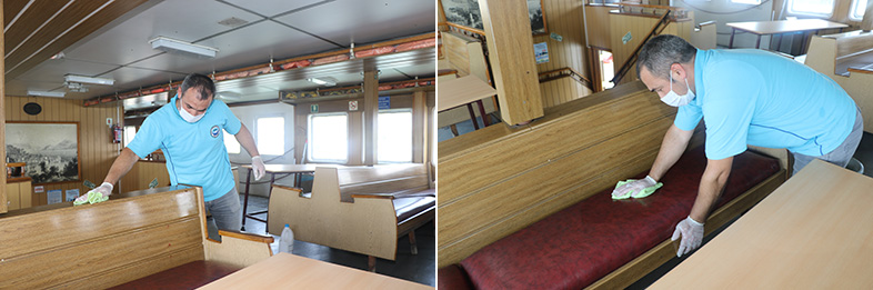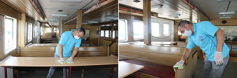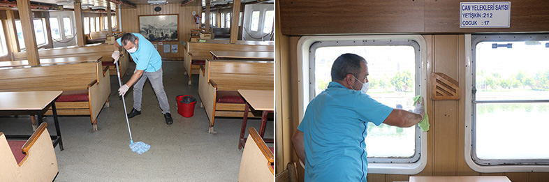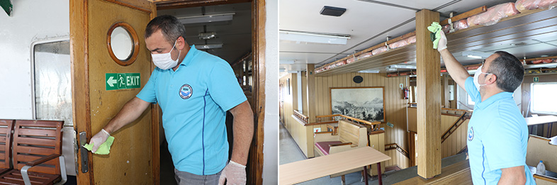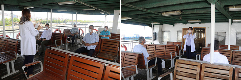 Deniz Ulaşım Müdürlüğü’ne bağlı vapur ve iskelede görev yapan personele uzman eğitmenler tarafından maske nasıl takılır, nasıl çıkartılır ve ne zaman kullanılır, eldiven kullanımında uyulması gereken kurallar, eldiven nasıl çıkartılır konu başlıklarında bilgiler verildi. Ayrıca çamaşır suyu ile ortam dezenfeksiyonu nasıl yapılır konularında detaylı eğitim verildi. Yetkililer Covid-19 salgın riskini en aza indirgeyebilmek için toplu taşıma araçları içerisinde açık havada seyahat yapma imkânı sağladığından, vatandaşların deniz ulaşımına daha fazla ilgi göstermeleri gerektiğini aktardı.