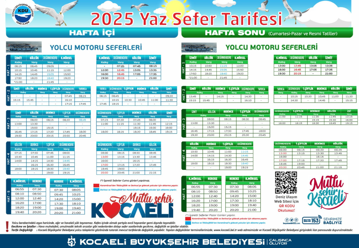 Büyükşehir Belediyesi yakın zamanda filosuna dahil ettiği deniz yolcu motoru ile Yarımca İskelesi’ni aktif hale getirmişti. Yarımca bölgesine yaz ayları boyunca kalkış ve varış hareketli 4 sefer gerçekleştirilirken, Değirmendere’den Tütünçiftlik ve Derince yönüne olan sefer saati ise 1 saat ileri alınacak. Karamürsel-Hereke hattında yapılan sefer sayıları ise 10’dan 12’ye çıkarıldı.
