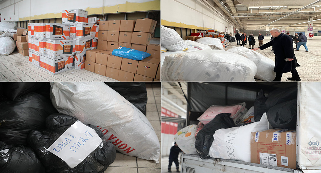 Deprem bölgesi için yardımların toplanacağı merkezde hazırlıklar devam ediyor