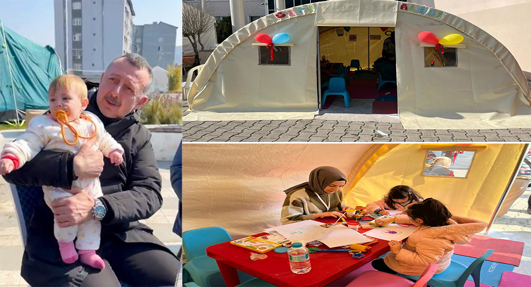 Kocaeli Büyükşehir Belediye Başkanı Tahir Büyükakın, Kahranmaraş’ta yaşanan iki büyük depremin ardından sarsıntılardan en çok etkilenen yerlerden olan Hatay’ın Defne ilçesinde görevlendirilmişti. Başkan Büyükakın ve beraberindeki ekibin ilçeye ayak basmasından bu yana depremin yaralarının sarılması için çok önemli adımlar atıldı. Arama kurtarma, alt yapı, içme suyu, gıda, çadır kent ve sahra hastanesi çalışmaları devam ederken, depremden en çok etkilenen çocukların oyunla iyileştirilmesi için de Defne’de ilk olarak Necmi Asfuroğlu Anadolu Lisesi’nin bahçesinde özel bir çadır hazırlandı.