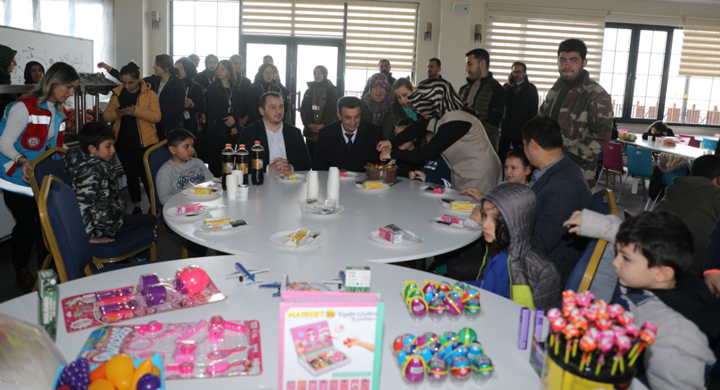 Kocaeli Büyükşehir Belediyesi’nin kent genelindeki kamp ve tesisleri, Kahramanmaraş, Hatay ve diğer çevre illerden gelen depremzedelere tahsis edilmeye devam ediyor. Depremzedelerin yaşamını kolaylaştırmak için deprem bölgesinde 24 saat görev yapan Büyükşehir ekipleri, duygulandıran sürprizlere de imza atıyor. Yaşanan travmanın izlerini silmeyi ve moralleri yükseltmeyi hedefleyen Büyükşehir Belediyesi çalışanları, Darıca Bayramoğlu’nda bulunan Hüma Hatun Gençlik Kampı’nda misafir edilen Hataylı Camcı ailesine hoş bir sürpriz yaptı. Depremzede ailenin kızları Yaren İnci’nin doğum günü olduğunu öğrenen çalışanlar, Darıca’daki kampın yemekhanesinde genç kızın 10. yaşını kutladı.