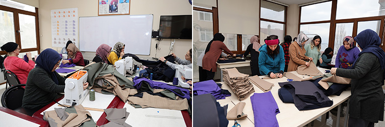 Gölcük depreminde aynı acıları yaşayan KO-MEK kursiyerleri depremzedeler için seferber oldu ve kendi elleriyle kışlık kıyafetler dikti