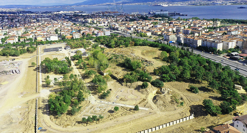 Derince’de farklı bir konseptle kent sakinlerine huzurlu bir ortam sunacak olan Derince Sağlıklı Yaşam Parkı’ndaki çalışmalar havadan görüntülendi