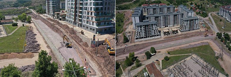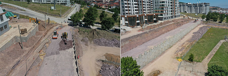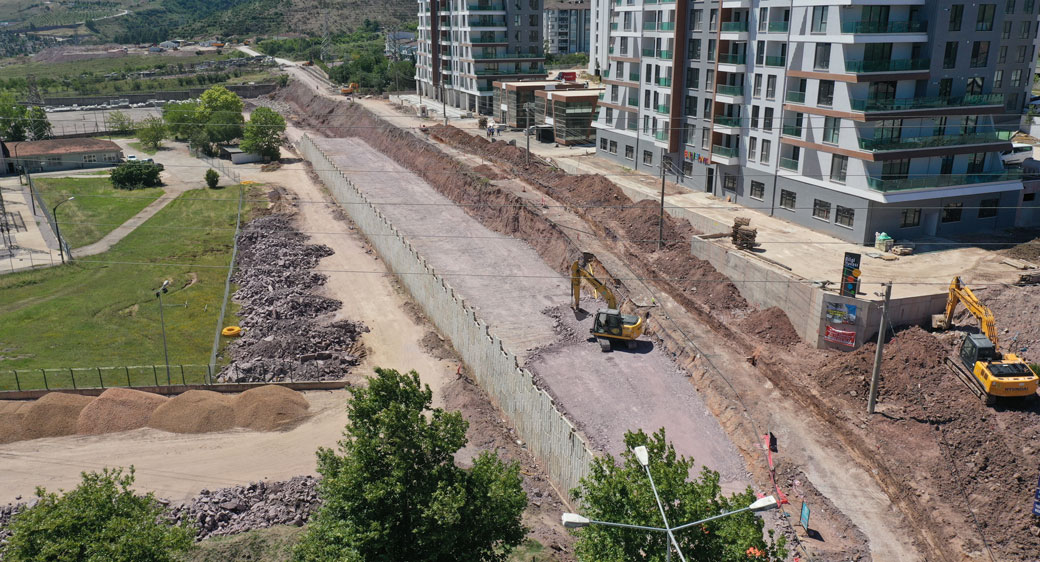 Genişletilerek 20 metreye çıkarılan Trafo Sokak’ta Fen İşleri Dairesi Başkanlığı ekipleri, menfez çalışmalarında sona doğru yaklaşıyor. 300 metre toprakarme duvar ve dolgu imalatının tamamlanmasından sonra yolda üstyapı çalışmaları gerçekleştirilecek. Genişletilmiş ve yenilenmiş hali ile yeni Trafo Sokak vatandaşlara daha iyi yol konforu sağlayacak.