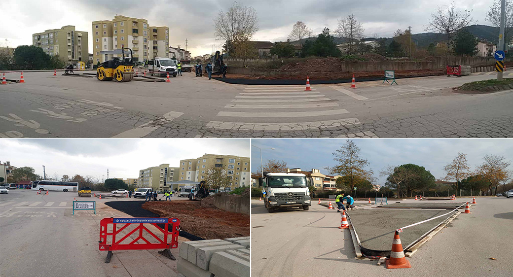 Büyükşehir, Derince M. Akif Ersoy Caddesi ve Ertuğrul Gazi Bulvarının kesişim noktasında kontrollü kavşak ve parke bordür çalışması yapıyor