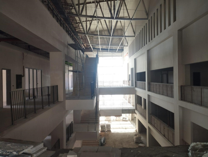 Yüzde 75’i tamamlanan projede devam eden çalışmalar arasında; bina içi şap imalatları, tüm katlarda sac kapı kasa montajları, asma katta koridor zemini 60x120 seramik imalatları ile tüm katlarda asma tavan ve taşyünü karkası imalatları, tüm bina elektrik pano montajlarına ve kablolama imalatları yer alıyor. Çatı (ışıklık) skylight imalatı karkas montajı, başkanlık katı zeminlerinde 60x60 seramik imalatları ve doğalgaz iç tesisatına ve yangın sprıng başlıklarının montajı ise başlayacak çalışmalar arasında.