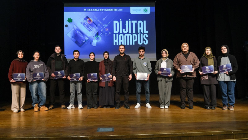 Kocaeli Büyükşehir Belediyesi ve Kocaeli Üniversitesi Sürekli Eğitim Merkezi işbirliğiyle yürütülen “Dijital Kampüs Eğitim Programları” kapsamında eğitimlerini başarıyla tamamlayan 235 genç katılımcı, Halkevi Gençlik Merkezi’nde gerçekleştirilen törenle sertifikalarını aldı.
