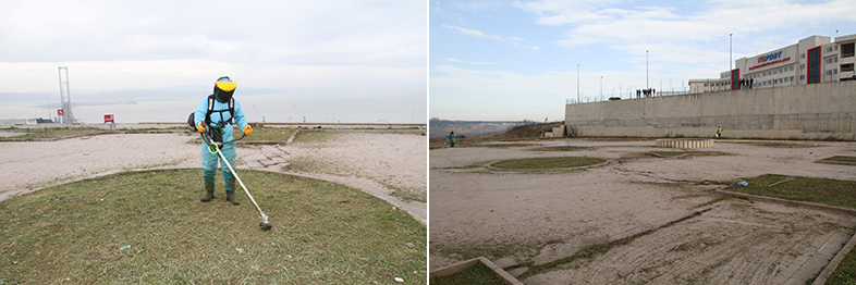 Park ve Bahçeler Dairesi Başkanlığı ekipleri, Diliskelesi Mahallesi’nde yatırım planına alınan seyir terasında çim biçme işlemi yaparak alanı temizliyor. Ekipler burada ilk olarak kafeterya inşa edecek. 180 metrekare alana yapılacak binanın 73 metrekaresi kafeterya, 23 metrekaresi servis alanı, 15 metrekaresi mutfak, soğuk ve kuru depo yeri olacak. Ayrıca yapı içerisinde bay/bayan ve engelli tuvaletler ile bebek bakım odası da bulunacak. Vatandaşların muhteşem manzara karşısında yemek yiyip çay içebilecekleri güzel bir kafeterya ile birlikte çocuk oyun grupları da seyir terası alanında yer alacak.