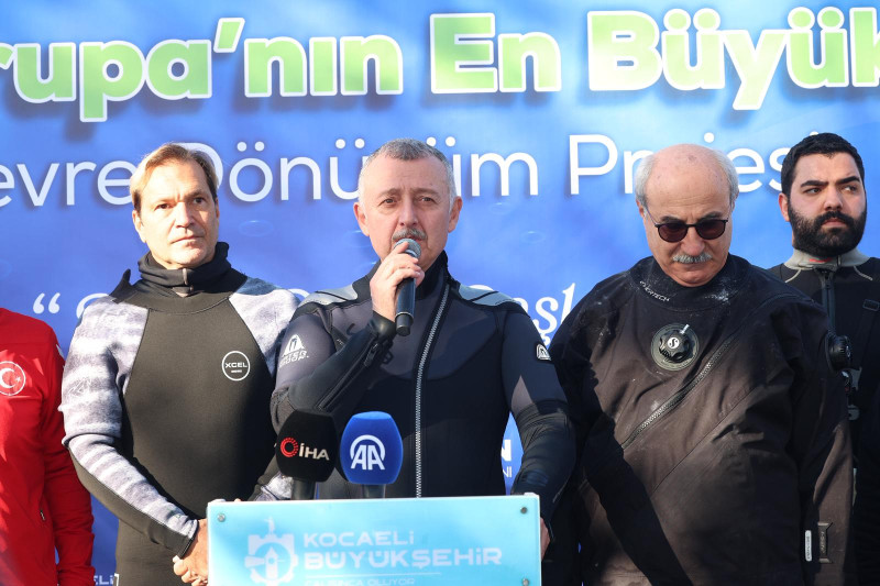Başkan Büyükakın dalış öncesinde kısa bir açıklama yaptı. İzmit Körfezi’nde Avrupa’nın en büyük çevre projelerinden birinin hayata geçirildiğini hatırlatan Başkan Büyükakın, “Bu projeyi Marmara’nın geleceği için hayati bir adım olarak görüyoruz. Bugüne kadar yaklaşık 190 hektar büyüklüğünde bir alanda temizlik yapıldı, projenin tamamı ise 460 hektar alanda sürecek. Projenin yarattığı etkiyi görmek için sürekli gözlem yapıyoruz. Denizdeki canlı popülasyonunun arttığını, farklı farklı türlerin İzmit Körfezi’nde görüldüğünü çok rahat söyleyebilirim.