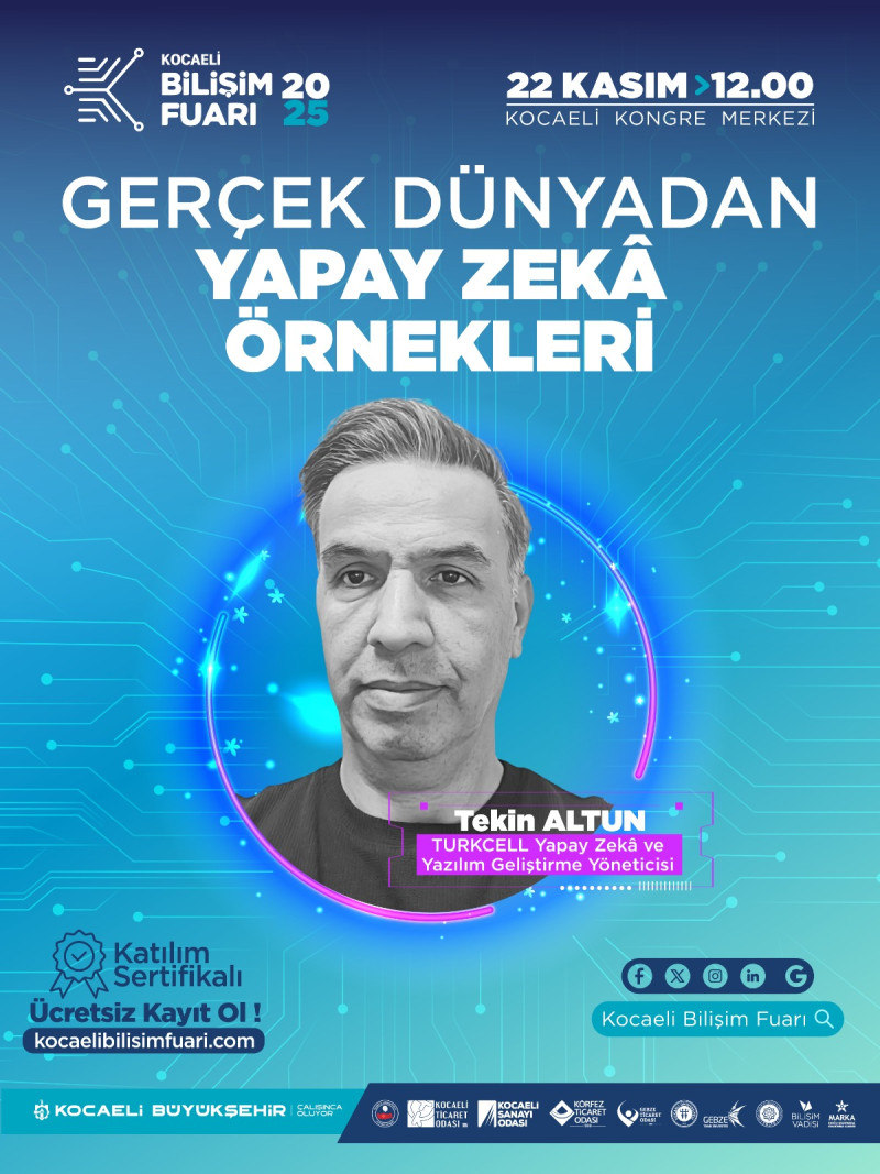 yer alacak. Panellerden atölyelere, siber güvenlik sunumlarından yapay zekâ uygulamalarına kadar geniş bir program ziyaretçileri bekliyor. Teknoloji meraklıları, öğrenciler, girişimciler ve sektör profesyonelleri için Kocaeli, üç gün boyunca dijital çağın kalbinin attığı şehir olacak.