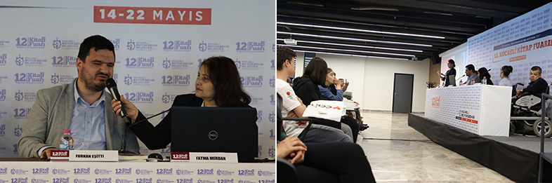 Söyleşi, panel, oturum ve etkinlikleri ile üçüncü gününde 12. Kocaeli Kitap Fuarı, Kocaeli Kongre Merkezi’nde devam etti. Engelsiz yazarlar, Selim Sırrı Paşa Salonu’nda 10-16 Mayıs “Engelliler Haftası” adlı söyleşide kitapseverlere hitap etti. Söyleşide konuşan engelsiz yazar Furkan Uğur Eşitti, “Küçüklüğümden bu yana İstihbarat Ajanı olmak istedim ama görme engelli olduğum için bu gerçekleşmedi. Bende polisiye roman yazmaya karar verdim. Dünya’nın ilk görme engelli polisiye roman yazarı benim” dedi.