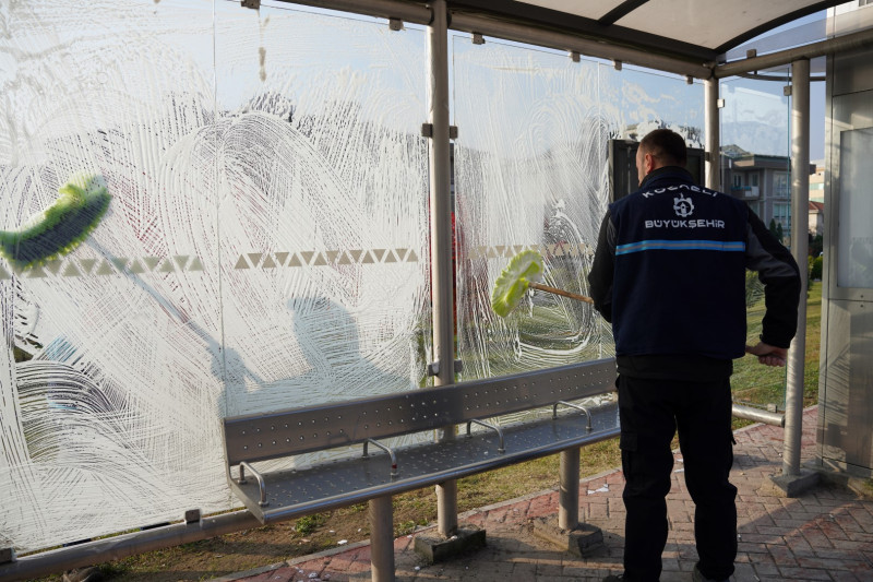 Kocaeli Büyükşehir Belediyesi kent genelindeki duraklarda temizlik çalışmaları yapıyor