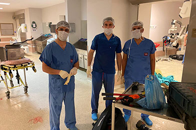 4 parmağının ezilerek parçalandığını gören doktorlar durumu itfaiye ekiplerine bildirdi. Kocaeli Büyükşehir Belediyesi İtfaiye Dairesi Başkanlığı ekipleri hastaneye sevk edildi. Ameliyathanede görev yapacakları için itfaiye ekiplerine de ameliyat kıyafetleri giydirildi. Doktorlar, itfaiye ekiplerinin gelmesiyle birlikte operasyona başladı.