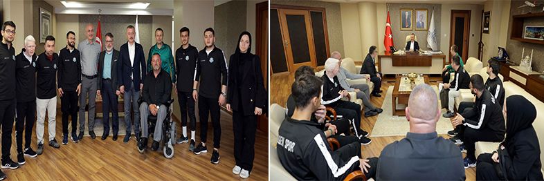 Engellilerin topluma katılımı ve entegrasyonuna dönük sportif etkinliklerinin özel bireylerin arasında sporcu ruhuyla birlikte özgüvenlilerine katkı olduğunun altı çizilen görüşmede Başkan Büyükakın, “Büyükşehir Belediyesi olarak engelli bireylerimizin yaşama sevincine ve gücüne inanıyoruz. Bu nedenle şunu çok iyi biliyoruz, engelli bireylerimiz sporla sınırlarını zorluyor. Sınırlarını zorlayan, yaşama sevincini büyüten çocuklarımıza ve gençlerimize destek olmayı bir görev olarak görüyoruz. Ziyaretiniz nedeniyle engellerini kıran ve sporla özgürleşen tüm yavrularımıza teşekkür ediyorum. Hiç merak etmesinler yanlarında Büyükşehir Belediyesi var. Spor yapmak bir tutkudur. Bu tutkuyu büyüten, fiziksel engellerini yenmek için adım atan ve bu tutkuya destek olan herkese bir kez daha teşekkür ediyorum. Elde edilen sportif başarı içinde sizleri tebrik ediyorum” dedi. Birliktelik yapılan görüş alışverişinin ardından sona erdi.