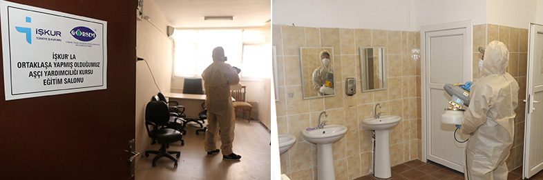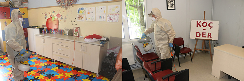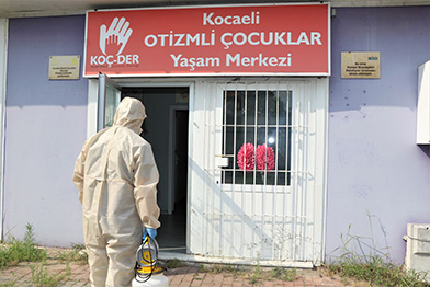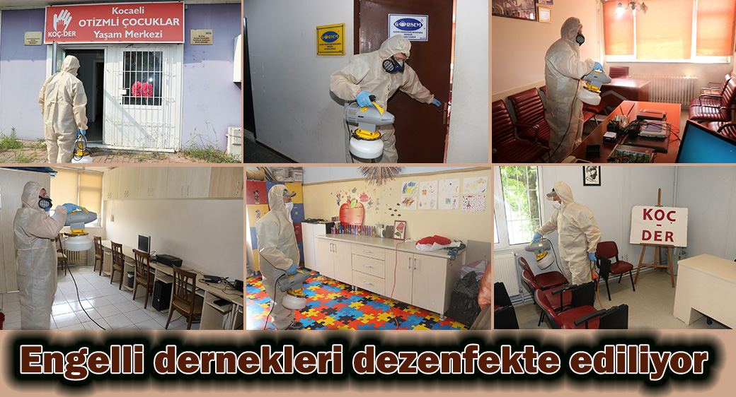 Kocaeli Büyükşehir Belediyesi, koronavirüs tedbirleri kapsamında geçici süreliğine kapanan ve yakında açılacak olan engelli vatandaşların derneklerinin talepleri doğrultusunda dezenfektan çalışması gerçekleştirdi. Sağlık ve Sosyal Hizmetler Dairesi Başkanlığı Engelli ve Yaşlı Hizmetleri Şube Müdürlüğü tarafından yapılan çalışma kapsamında dernek toplantı odaları, eğitim sınıfları, dernek depoları ve mutfakları dezenfekte edildi. Ayrıca dezenfekte edilen derneklere maske ve dezenfeksiyon el sıvısı da teslim edildi.