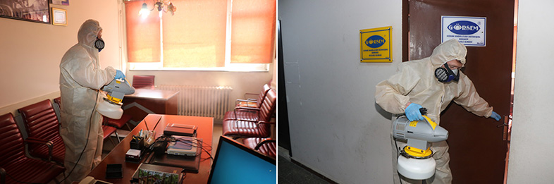 Koronavirüsle mücadelede engelli vatandaşlara destek olan derneklerin talepleri doğrultusunda Büyükşehir Belediyesi, bürolarını dezenfekte etti. Covid-19 ile mücadele sürecinde Büyükşehir Belediyesi, engelli ve yaşlı vatandaşların, kronik hastalığı olan dezavantajlı bireylere günlük yaşamları için gerekli zaruri ihtiyaç maddelerinin tedarikinden, sağlık hizmetlerine erişimlerine kadar birçok alanda hizmet sağlıyor.