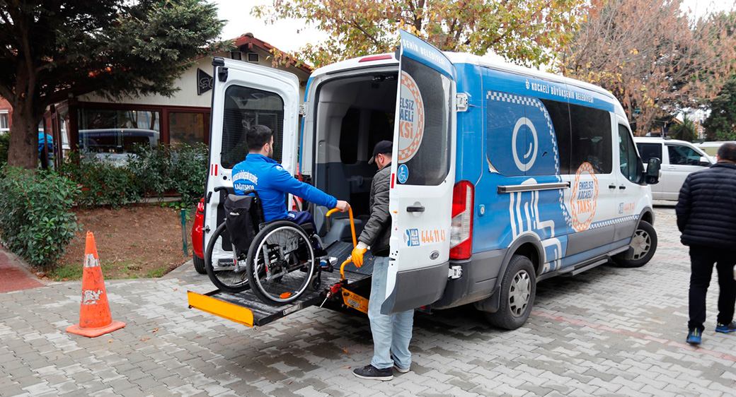 Engelli ve Yaşlı Hizmetleri Şube Müdürlüğünce tüm Kocaeli’de hizmet veren ve randevu sitemi ile çalışan “Engelsiz Taksi”, tekerlekli sandalyede olan vatandaşlara hizmet veriyor. Engelli vatandaşlar istedikleri yerden alınarak gidecekleri yere kadar ulaştırılıyor.