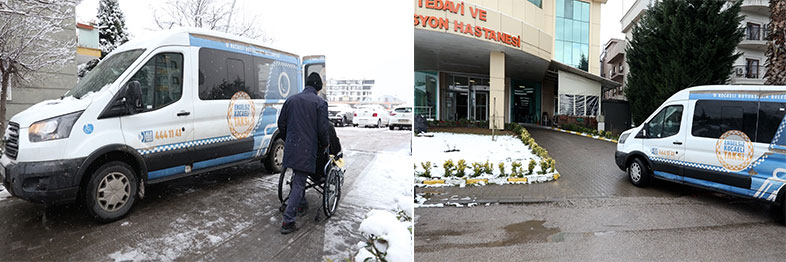 Sağlık ve Sosyal Hizmetler Dairesi Başkanlığı’na bağlı olan Engelli ve Yaşlı Hizmetleri Şube Müdürlüğü’nce tüm Kocaeli’de hizmet veren ve randevu ssitemiyle çalışan “Engelsiz Taksi” projesi yoğun ilgi görüyor. Kocaeli’de ikamet eden, tekerlekli sandalyeli engelli bireyler, ekonomik durumu yetersiz olan ve çevresinde ulaşım desteği bulunamayan vatandaşlarımız ücretsiz “Engelsiz Taksi” hizmetinden yaralanabiliyor. Tekerlekli sandalyeli bireylerin refakatçileri ile birlikte özel donanımlı araçlarla güvenli bir şekilde ulaşımları sağlanıyor.