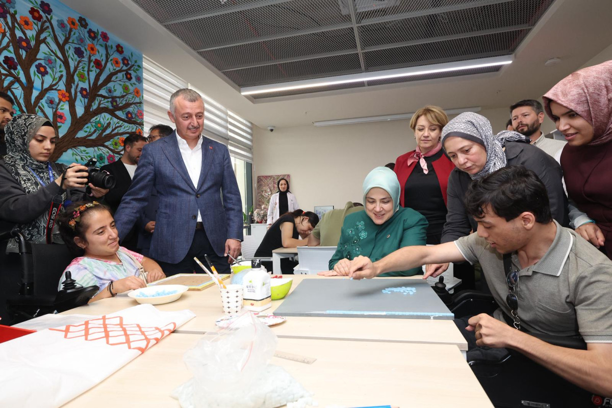 Gonca Engelsiz Yaşam Merkezi’ndeki eğitimler hakkında bilgi alan AK Parti Genel Merkez Kadın Kolları Başkanı Tuğba Işık Ercan, öğrencilerle keyifli dakikalar geçirdi, ailelerle de sohbet etti. Gonca Engelsiz Yaşam Merkezi’ni çok beğendiğini ve Türkiye’ye örnek bir projenin hayata geçirildiğini vurgulayan Genel Başkan Ercan, Başkan Tahir Büyükakın’ı tebrik ettiğini söyledi. Ercan, “Gonca Engelsiz Yaşam Merkezi’ni ziyaret etmekten son derece mutlu oldum. Kocaeli Büyükşehir Belediye Başkanımız Tahir Büyükakın’a, toplum hayatına yaptığı bu katkıdan dolayı çok teşekkür ediyorum. Burası 1.500 öğrenci kapasiteli yaklaşık bir engelsiz yaşam merkezi. Aslında burası, özel çocuklarımızın gelip eğitimlerini aldığı, ailelerin arayıp da bulamadığı bir merkez.