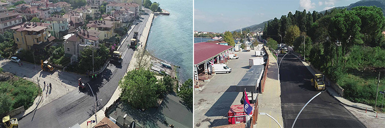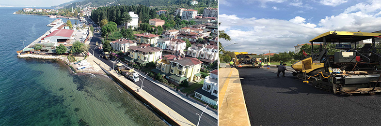 Yatırım ve projeleri ile vatandaşın hayatına değer katan Kocaeli Büyükşehir Belediyesi, Karamürsel Altınkemer Sahili ile Ereğli arasındaki sahil düzenleme projesinde dur durak bilmiyor. Karamürsel Altınkemer Sahili ile Ereğli arasındaki sahil düzenleme projesi kapsamında 5 kilometre uzunluğunda yol yapan ekipler, 3,5 kilometre uzunluğundaki yolda aşınma asfalt serimi çalışmalarını tamamladı. Buna göre Ereğli sahilinin 3,5 kilometrelik kısmında bin 500 ton son kat aşınma asfaltı serildi. Ekipler sahil yolunda daha önce de 2,5 kilometre uzunluğunda baskı beton kaldırım çalışması yapmıştı.