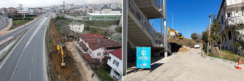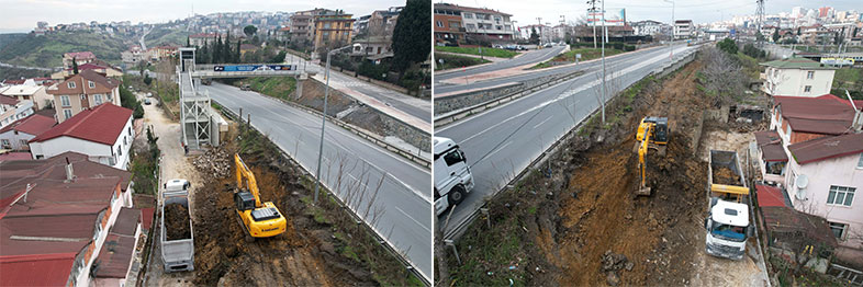 Geçtiğimiz yıl Darıca ilçesinde Eskihisar Feribot yolu üzerinde prekast kirişli çelik merdivenli tek asansörlü yaya üstgeçidi yapılarak hizmete sunulmuştu. Üstgeçidin yapıldığı yerden tren yolu üzerindeki köprüye yaklaşım yoluna kadar olan kısımda ilave ek şerit yapım çalışmalarına başlandı. İkiye çıkarılacak şerit sayısı ile İstanbul istikametine gitmek için D-100 Karayoluna bağlanacak araçlar ilave şeridi kullanarak trafiği rahatlatacak. Büyükşehir Belediyesi tarafından yapılan ilave şerit yapılması için taş duvar temel kazısına başlandı.