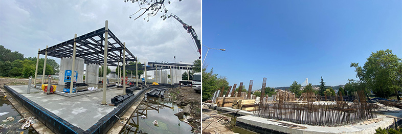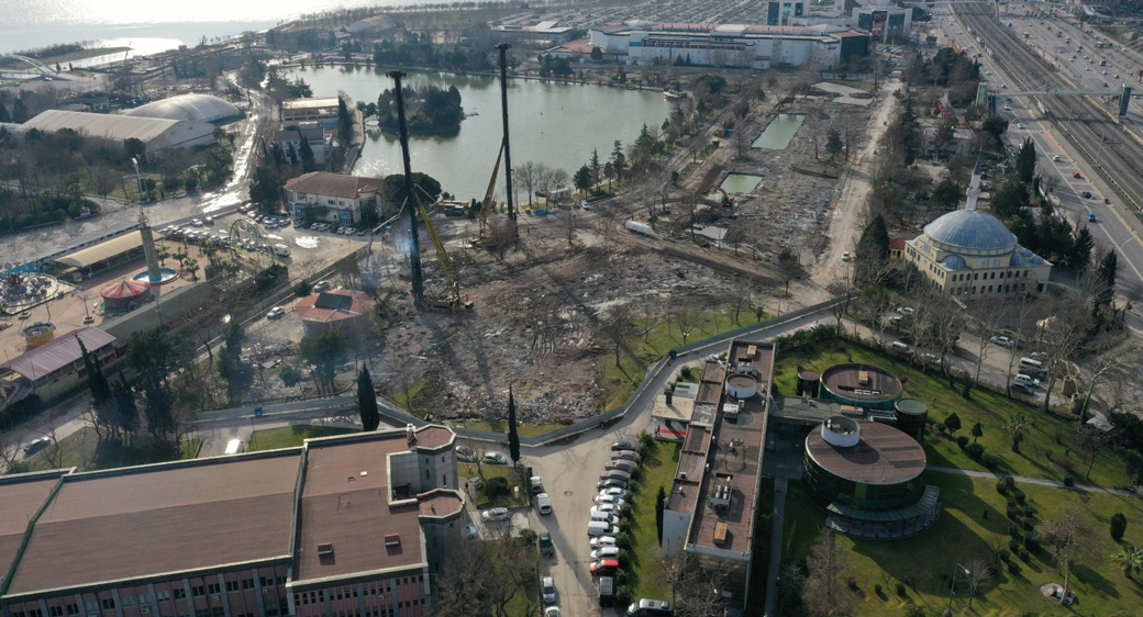 Kocaeli Büyükşehir Belediyesi’nin kentte yeşil alanların sayısını arttıran projeleri arasında yer alan Kocaeli Fuarı’nın İzmit Millet Bahçesine dönüştürülmesi kapsamında çalışmalar sürüyor. Eski yapıların kaldırıldığı Kocaeli Fuarı’nda zemin güçlendirilmesi için fore kazık imalatları yapıldı. Zemini güçlendirilen İzmit Millet Bahçesi alanı kafeler bölgesinde çelik imalatları devam ediyor. Düğün salonları bölgesinde ise temel perde kolon imalatları yapılıyor.