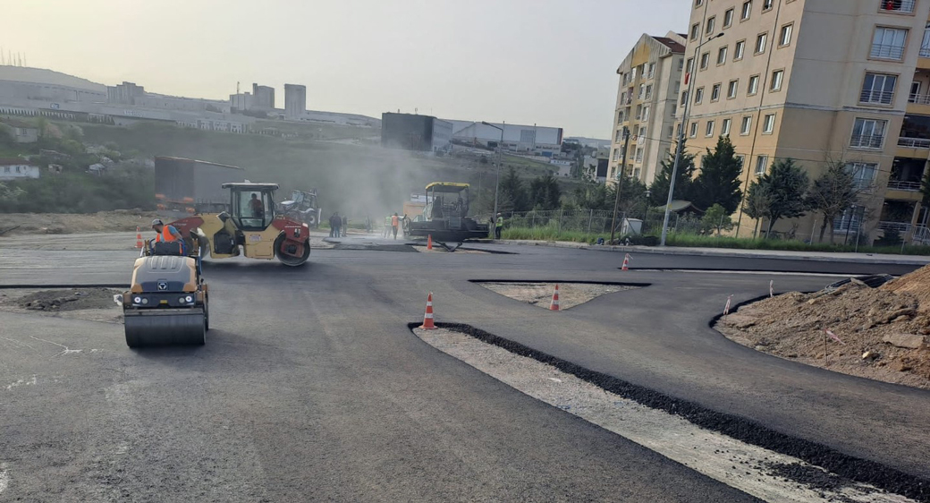 Büyükşehir tarafından Gebze Kirazpınar Mahallesinde TOKİ Konutları ve Küme Evlerine ulaşımın sağlandığı yolda üstyapı çalışmaları yapılıyor