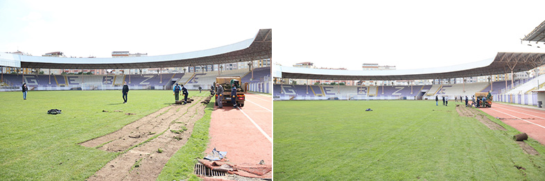 Yenileme çalışması kapsamında 12 bin 700 metrekarelik alanda bulunan Alaettin Kurt Stadı’nın doğal çimleri, daha dayanıklı FIFA standartlarında 45 mm sentetik çim halı sistemi ile değiştirilecek. Sürekli kullanılabildiği için tercih edilen sentetik çim ile stadın daha aktif bir şekilde kullanılabilmesi sağlanacak.