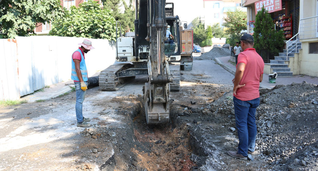 Gebze Tatlıkuyu Mahallesindeki bazı sokaklarda eskiyen kanalizasyon hattı ile yeni olarak yağmursuyu altyapı hattı inşa ediliyor