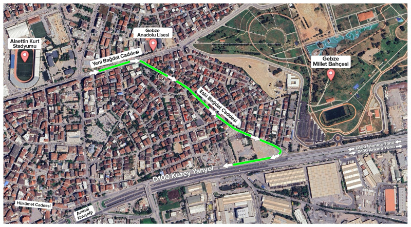Yeni trafik dolaşım planına göre, D-100 Kuzey yan yoldan şehir merkezine gidecek araçlar, Gebze Millet Bahçesi Kavşağı ve Millet Bahçesi çevre yolundan Yeni Bağdat Caddesi’ne veya sonrasında ise D-100 Kuzey yan yolu takiben İlyasbey Caddesi’nden Yeni Bağdat Caddesi’ne erişebilecek. Şehir merkezinden D-100, D-100 Kuzey yan yol ve Anibal Kavşağı’na gidecek araçlar ise Eski Bağdat Caddesi’ni kullanacak.