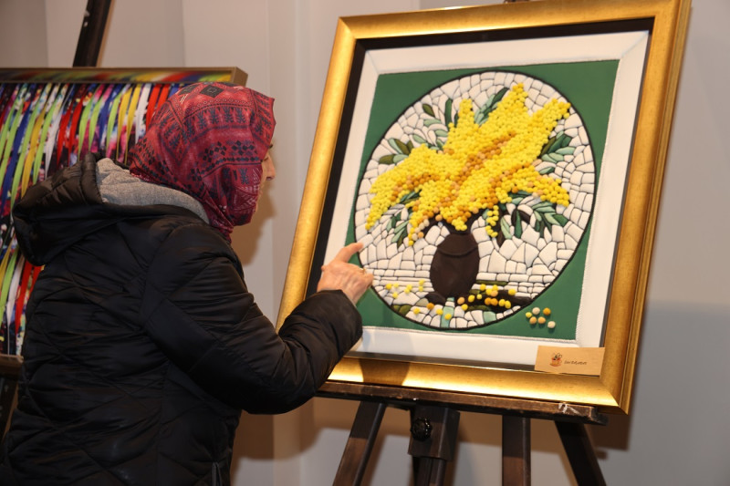 Kırk yama tekniğiyle hazırlanan eserlerde ise sandık köşelerinde kaybolmaya yüz tutmuş kumaşlar, kursiyerlerin emeğiyle yeniden hayat buldu. Eski ürünler, örtüler ve panolar hâline getirilerek gün yüzüne çıkarıldı, geçmişin izleri sanatla buluşturuldu.