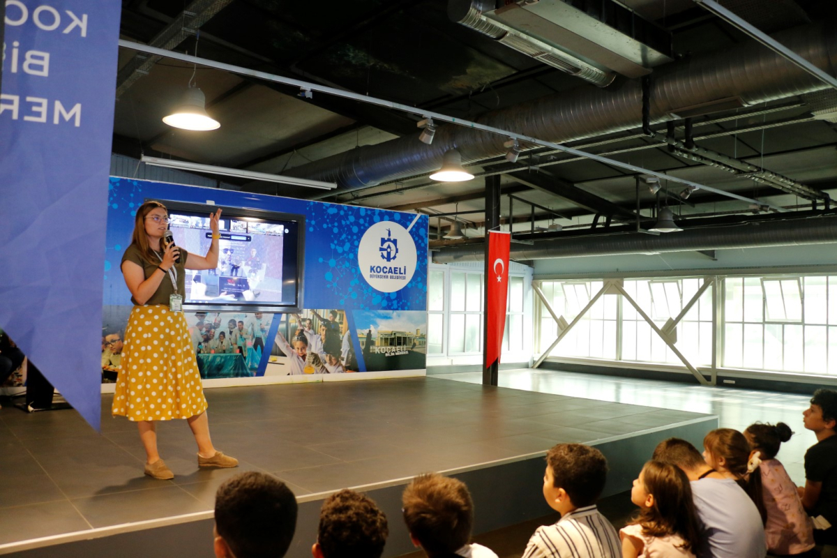Kocaeli Bilim Merkezi’ndeki eğlenceli atölyelere katılan geleceğin bilim insanları Astronot Tuva Cihangir Atasever’i uzaya uğurladı