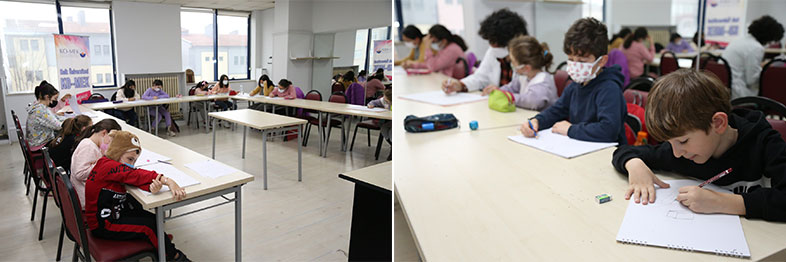 İlk kez 7-12 yaş için hafta sonu resim kursu açan KO-MEK ilginin yoğun olmasından oldukça memnun. Resim kursuna ilgi duyan çocukların hafta sonlarını daha verimli geçirerek yeteneklerini geliştirdiği kursta kara kalem ve yağlı boya resimlerinin yanı sıra genel çizimler yapılarak eğitimler tamamlanıyor.